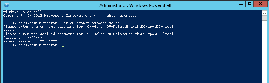 5 - Next, you must create password for your new user by typing Set-ADAccountPassword Maler
