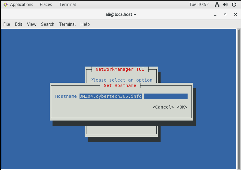 Open terminal on centos and type command as shown above to configure network
